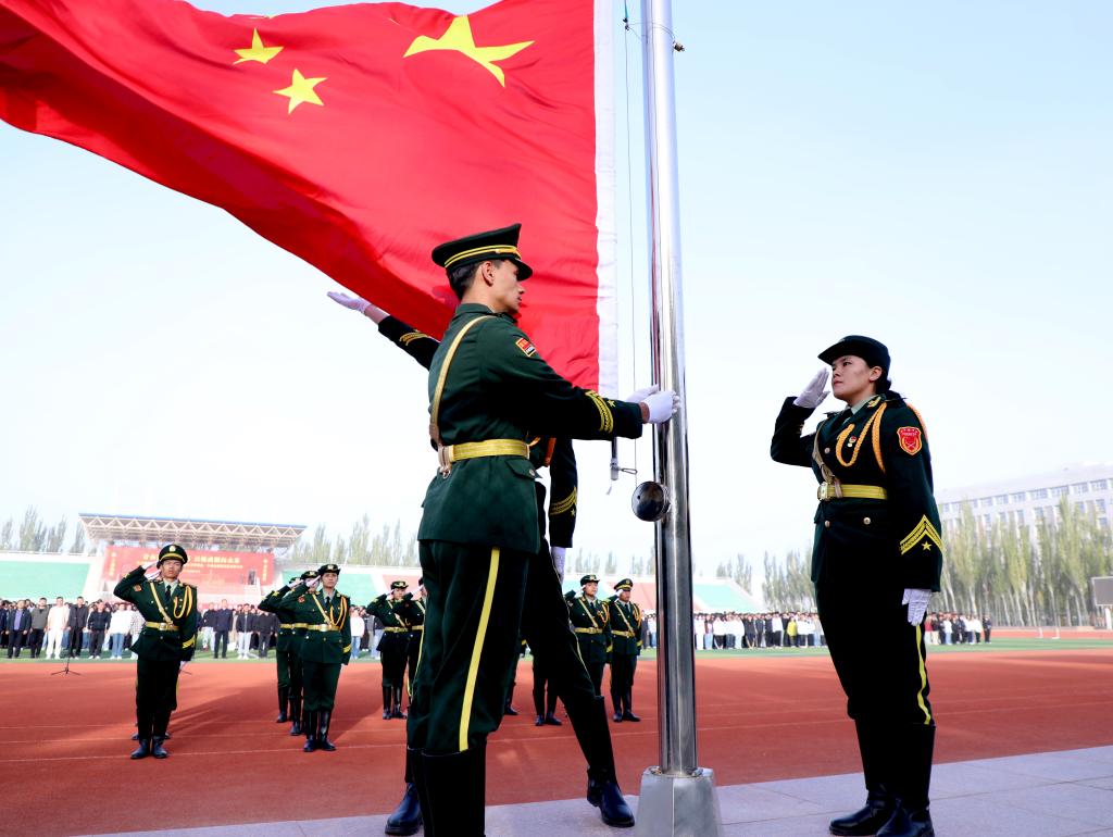 巴音郭楞职业技术学院举行庆祝中华人民共和国成立76周年升国旗仪式