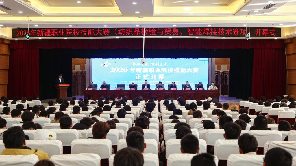 2026年新疆职业院校技能大赛(智能焊接技术、纺织检验与贸易赛项)在巴音郭楞职业技术学院隆重开幕